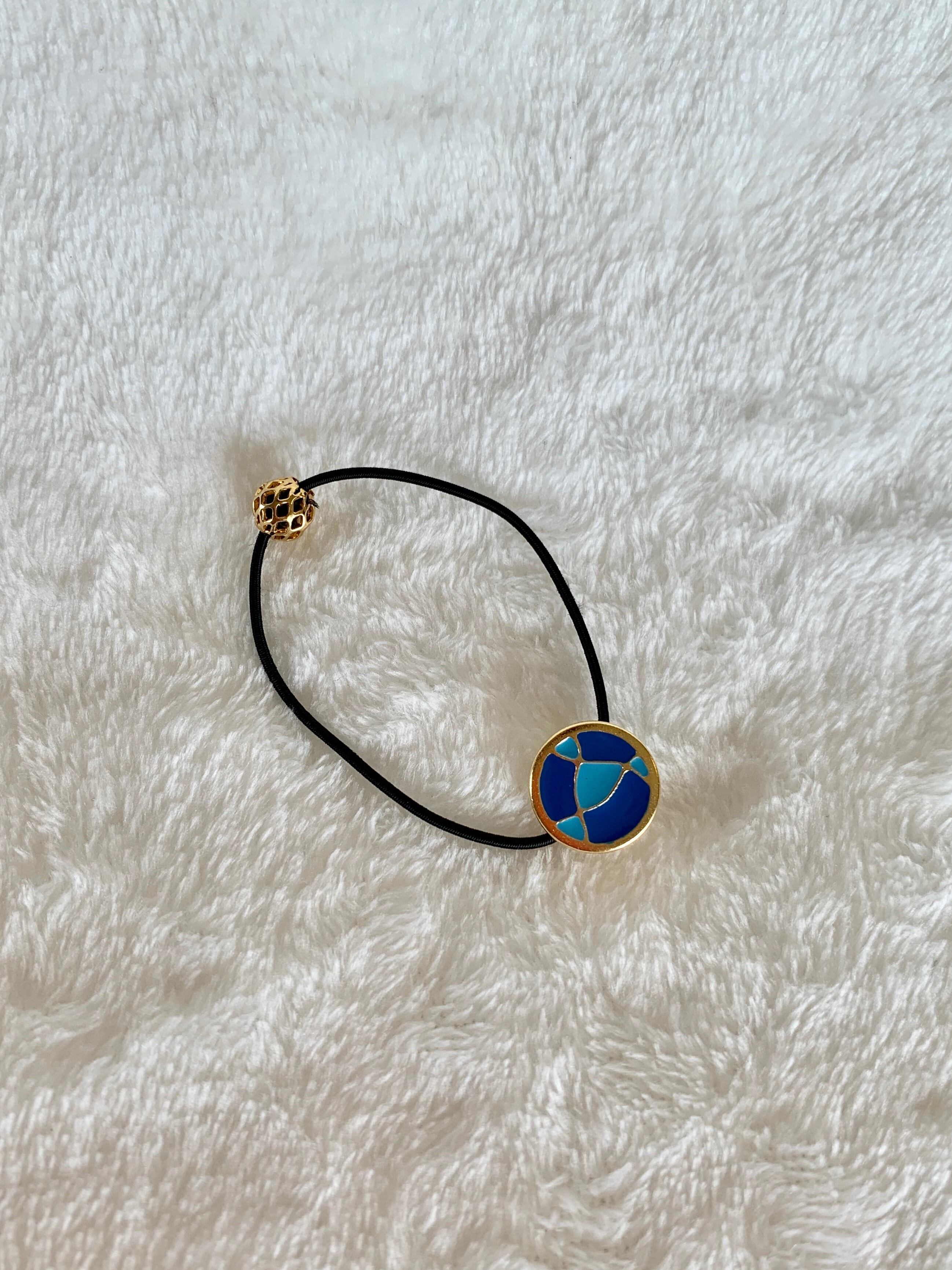 アートなデザインのボタンで作ったヘアゴム とても軽いボタンです