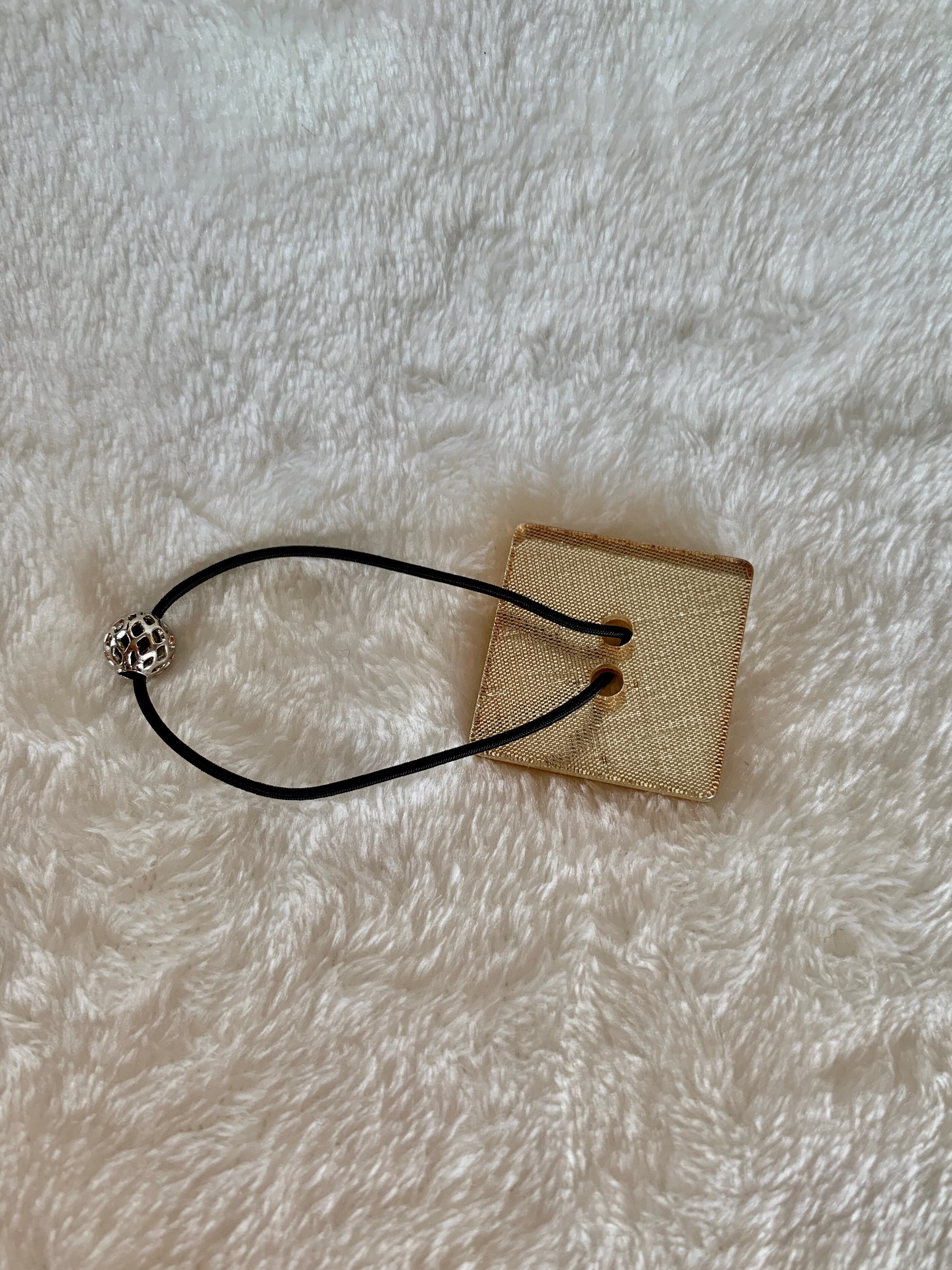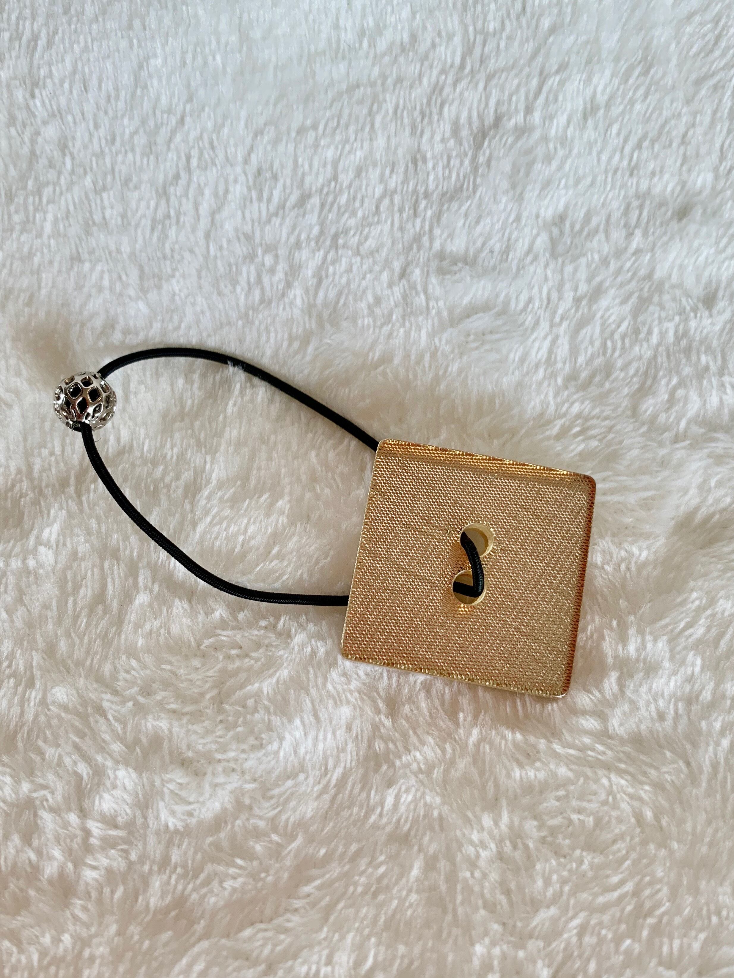 スクエア型ボタンで作ったヘアゴム ボタンはパリの手芸店で購入しました 結び目はピーズのパーツで隠しています ボタンサイズ(約2,7×2,7)