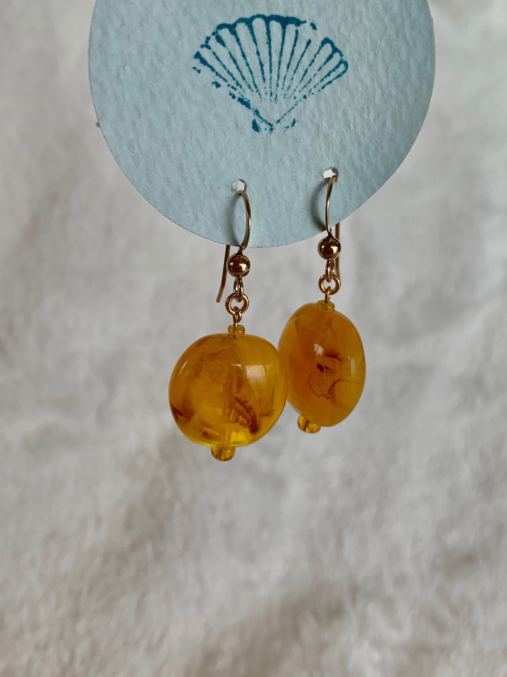 Parisアンティークビーズ ドロップ べっこう色 ピアス