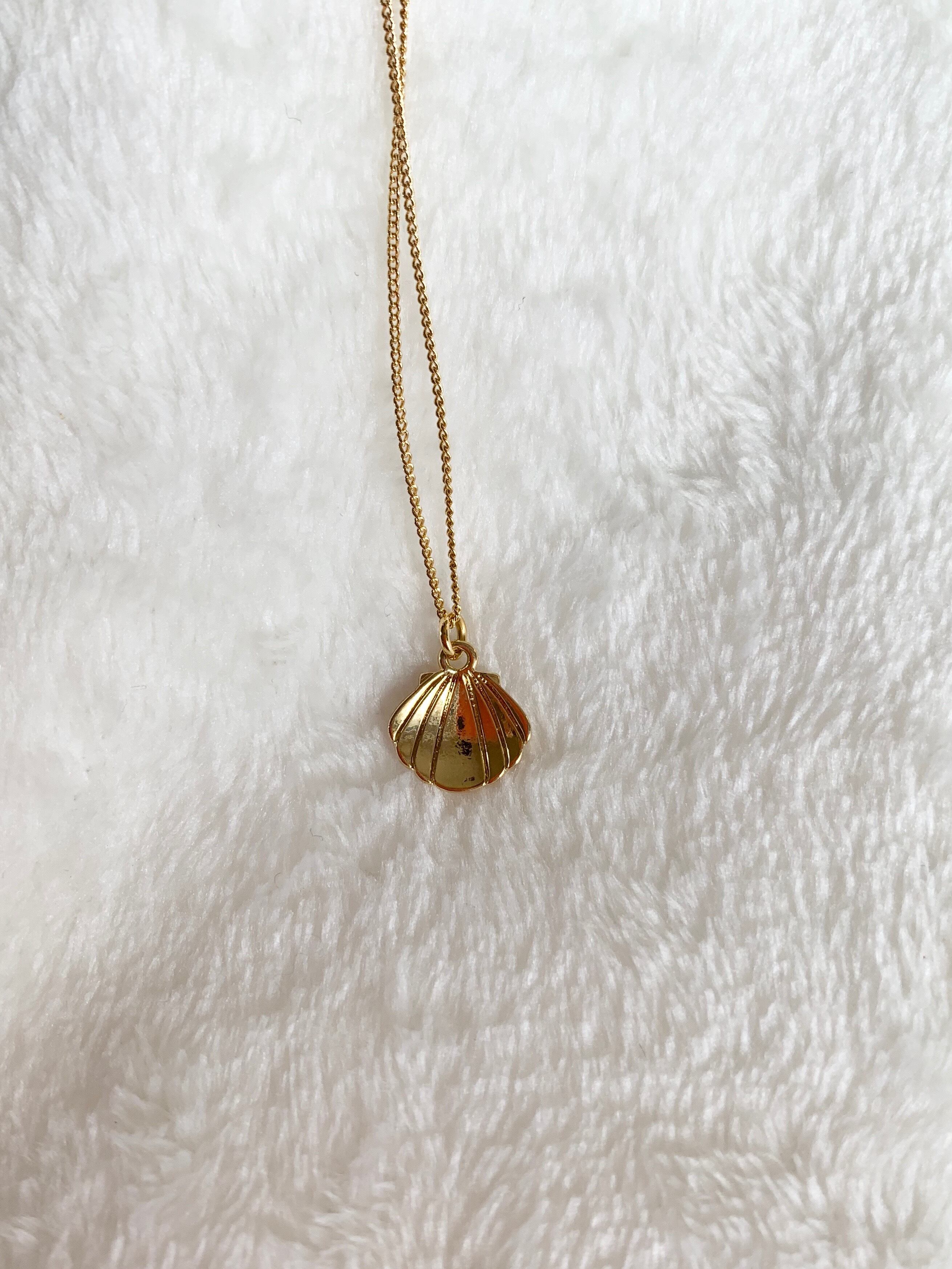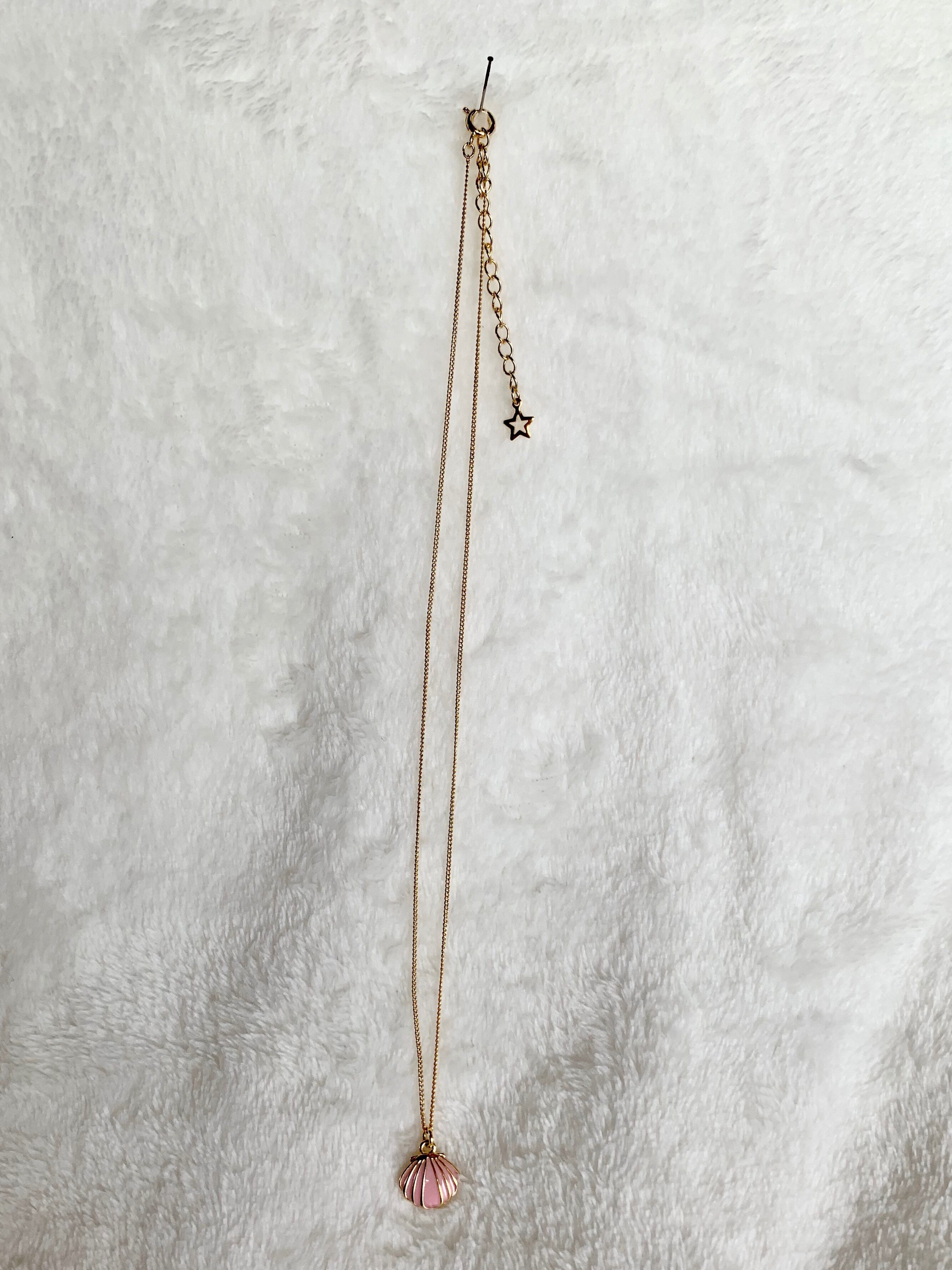 シェル型のパーツを付けたネックレスです ネックレス部分 全長さ:約43cm 長さ調整部分:約5.5cm パーツ 約1.2cm 素材 メッキまたは真鍮・丹銅
