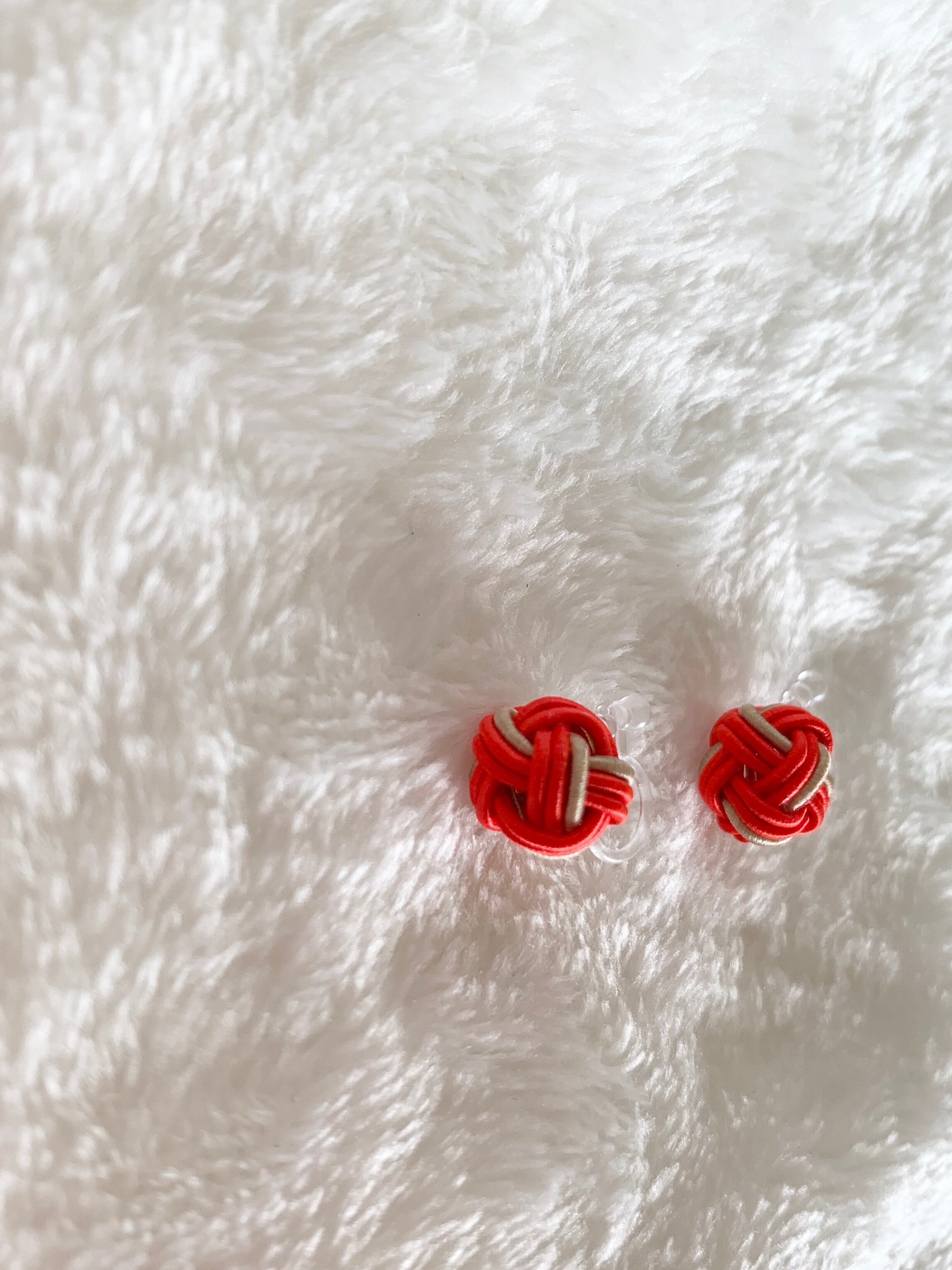 素材 水引き 樹脂 (水引きと樹脂ピアスをつける部分と、水引きを固定する為に手芸用のボンドを使用しています)