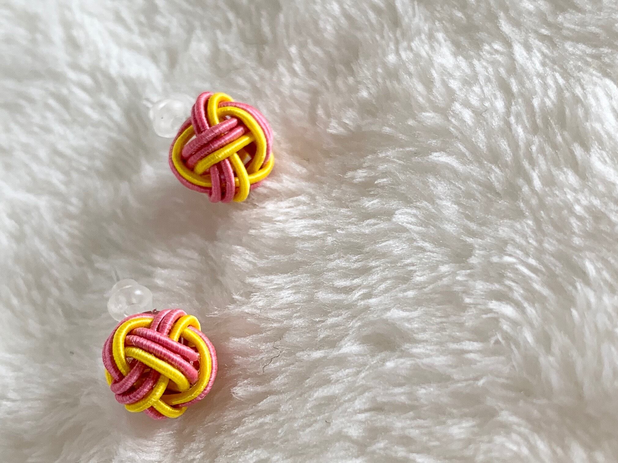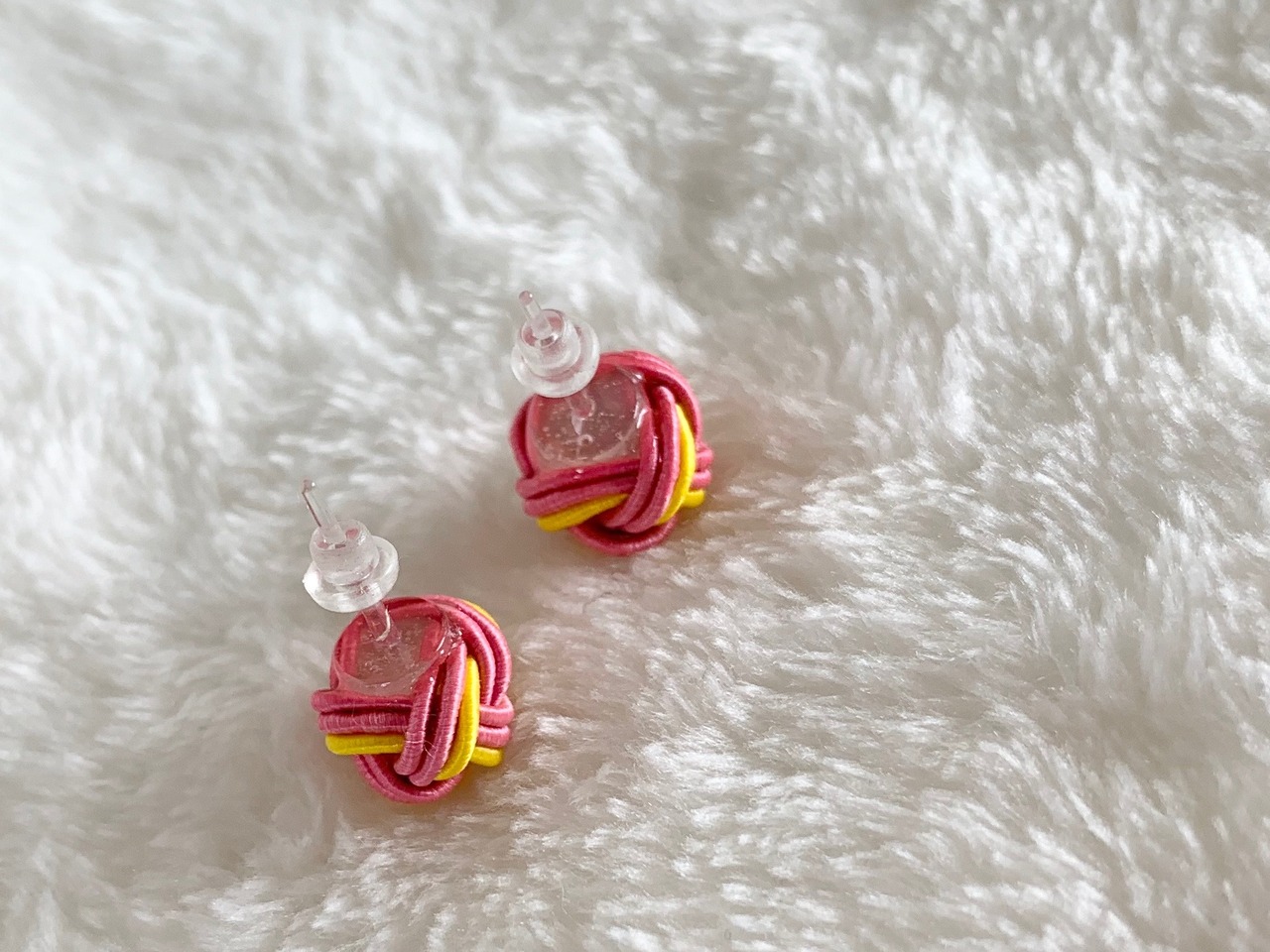 素材 水引き 樹脂 (水引きと樹脂ピアスをつける部分と、水引きを固定する為に手芸用のボンドを使用しています)